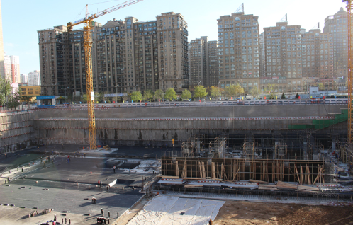 本工程位于北京市朝陽區(qū)大屯地區(qū),北苑路和五南路交叉口的東北側(cè)。擬開挖基坑南北長約109m,東西長約140m,基坑開挖深度最深達(dá)-20.75m。場區(qū)東側(cè)緊貼融華世家住宅小區(qū)的圍墻,南面為市政道路,西側(cè)為總包方材料加工區(qū)域,北側(cè)距離既有的城管辦公樓僅1.5m,邊界條件非常復(fù)雜,對于支護(hù)工程的安全和文明施工要求很高。